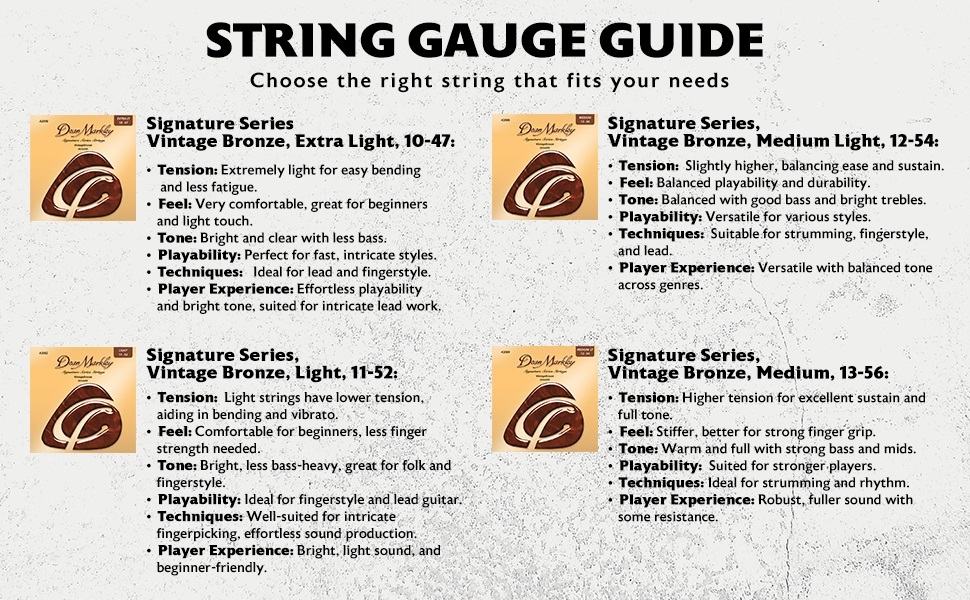 Komplet 6 strun do gitary akustycznej z serii VintageBronze Acoustic. Grubości: .010 .014 .024w .030 .038 .047. Struny z serii VintageBronze zapewnią czysty i klarowny ton oraz długą żywotność. Owijka wykonana jest w 85% z miedzi i 15% z cynku. Jakość strun usatysfakcjonuje najbardziej wymagających gitarzystów akustycznych.