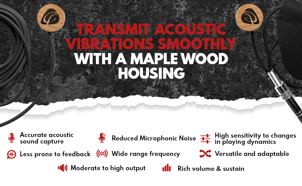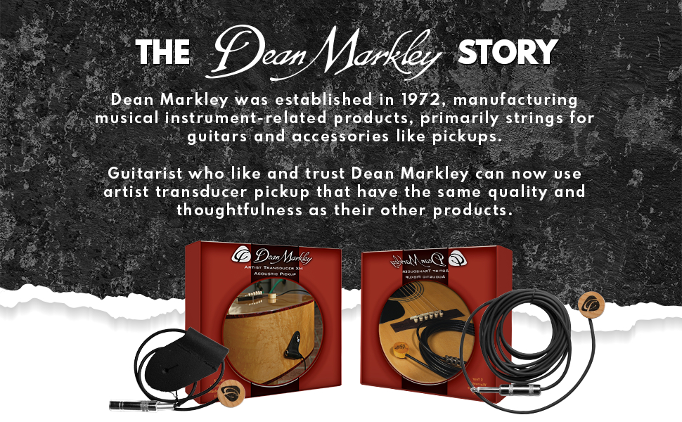 Dean Markley - Artist Transducer: przetwornik piezoelektryczny (passive ). Bardzo prosy montaż, dynamiczne i naturalnie brzmiące wzmocnienie instrumentu.Artist Transducer jest montowany na płycie gitary za pomocą specjalnego kleju, który umożliwia wielokrotne zakładanie i zdejmowanie przetwornika bez wpływu na jakość lakieru gitary (nie powoduje uszkodzeń). Świetnie nadaje się również do innych instrumentów akustycznych, takich jak wiolonczela, altówka i kontrabas lub innych. Kabel 10'' zakończony wtykiem typu jack /1/4".