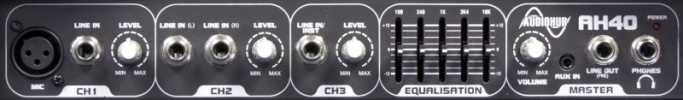 Kontrola: 3 x Level, Volume. Wejścia: 1 x Mic, 4 x Instrumentalne