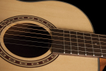 Gitara akustyczna z serii Apprentice - G-Mini 5. Rozmiar: 7/8. Typ/kształt: Grand Auditorium Mini, G Mini, Travel. Płyta wierzchnia: selekcjonowany świerk. Boki i tył: mahoń. Gryf: mahoń. Podstrunnica: Engineered Wood. Ilość strun: 6. Ilość progów: 20. Strunnik (materiał): Plastic. Szerokość na pierwszym progu: 1-11/16'' (42.8 mm). Mostek (materiał): Engineered Wood. Skala instrumentu: 23-1/4". Maszynki chromowane: Tuners Chrome Diecast w/black buttons. Rozeta: Rosette Washburn Heritage. Ożebrowanie korpusu: Bracing Quarter sawn scalloped. W zestawie pokrowiec typu Gig Bag (kolor jasno brązowy) z logiem Washburn. Kolor: naturalny. Wykończenie: mat.