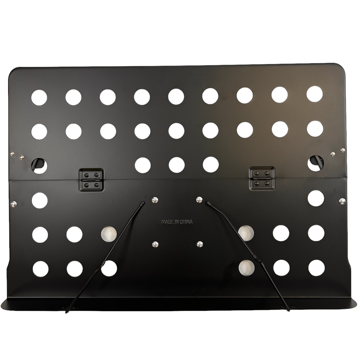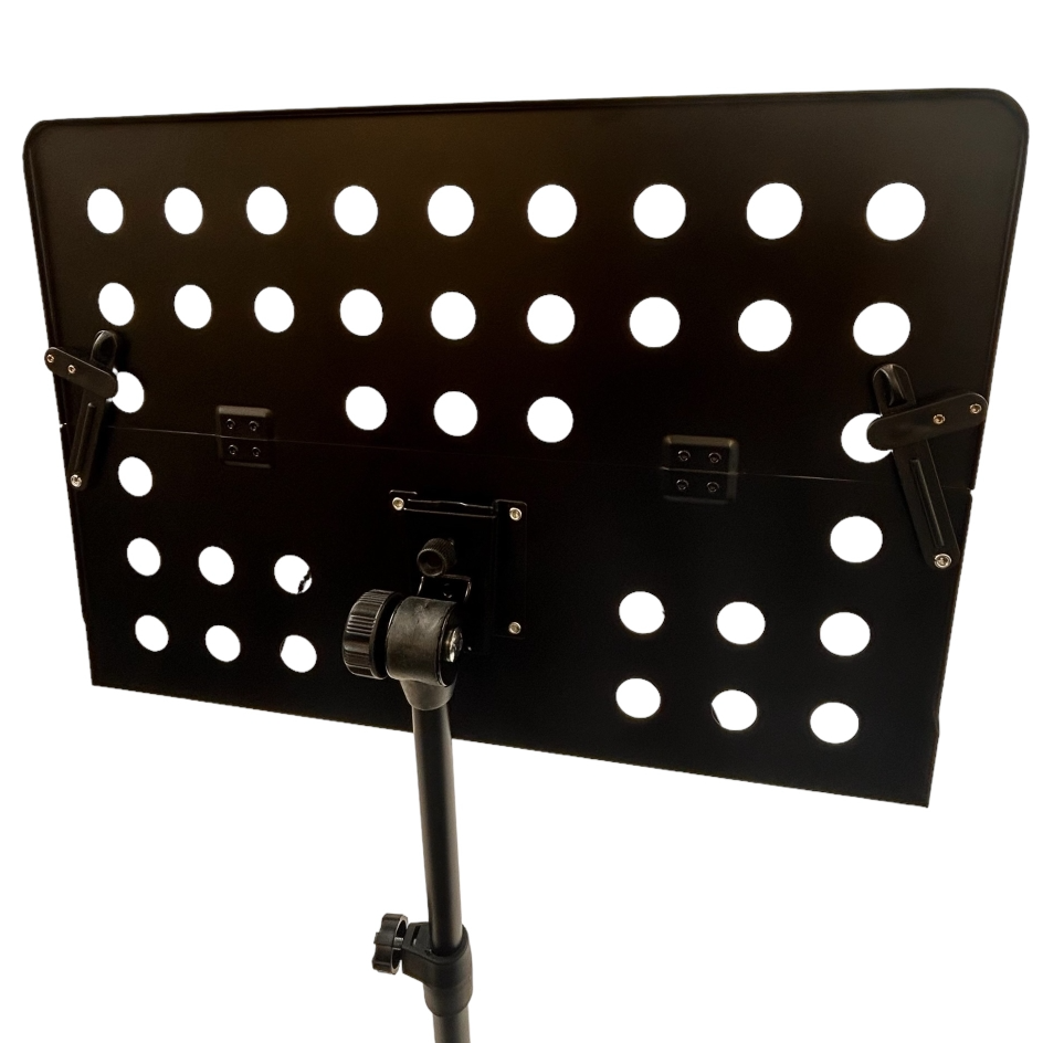 Solidny i profesjonalny pulpit do nut. Posiada dwupunktową regulację wysokości, co pozwala na wygodne czytanie tekstów utworów lub partii nutowych zarówno siedząc i stojąc. Statyw wyposażony jest w specjalne łapki do przytrzymywania kartek, dzięki czemu nie będzie problemu z uciekającymi nutami. Kąt nachylenia pulpitu względem użytkownika jest regulowany, a jego głębokość jest stosunkowo duża, pozwalająca umieścić nawet segregator. Posiada trzy składane nóżki zapewniające stabilność zarówno w domu jak i na scenie. Materiały użyte przy wykonaniu statywu gwarantują niezawodność i komfort przy długim użytkowaniu. Idealny dla zespołów muzycznych, studiów nagraniowych, wykonawców scenicznych, szkół i nie tylko. Spakowany w jednym kartonie.