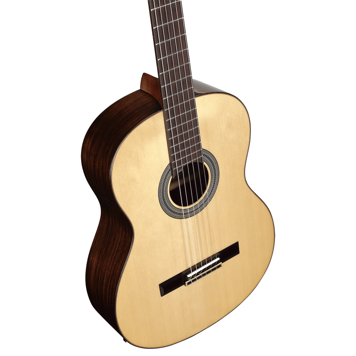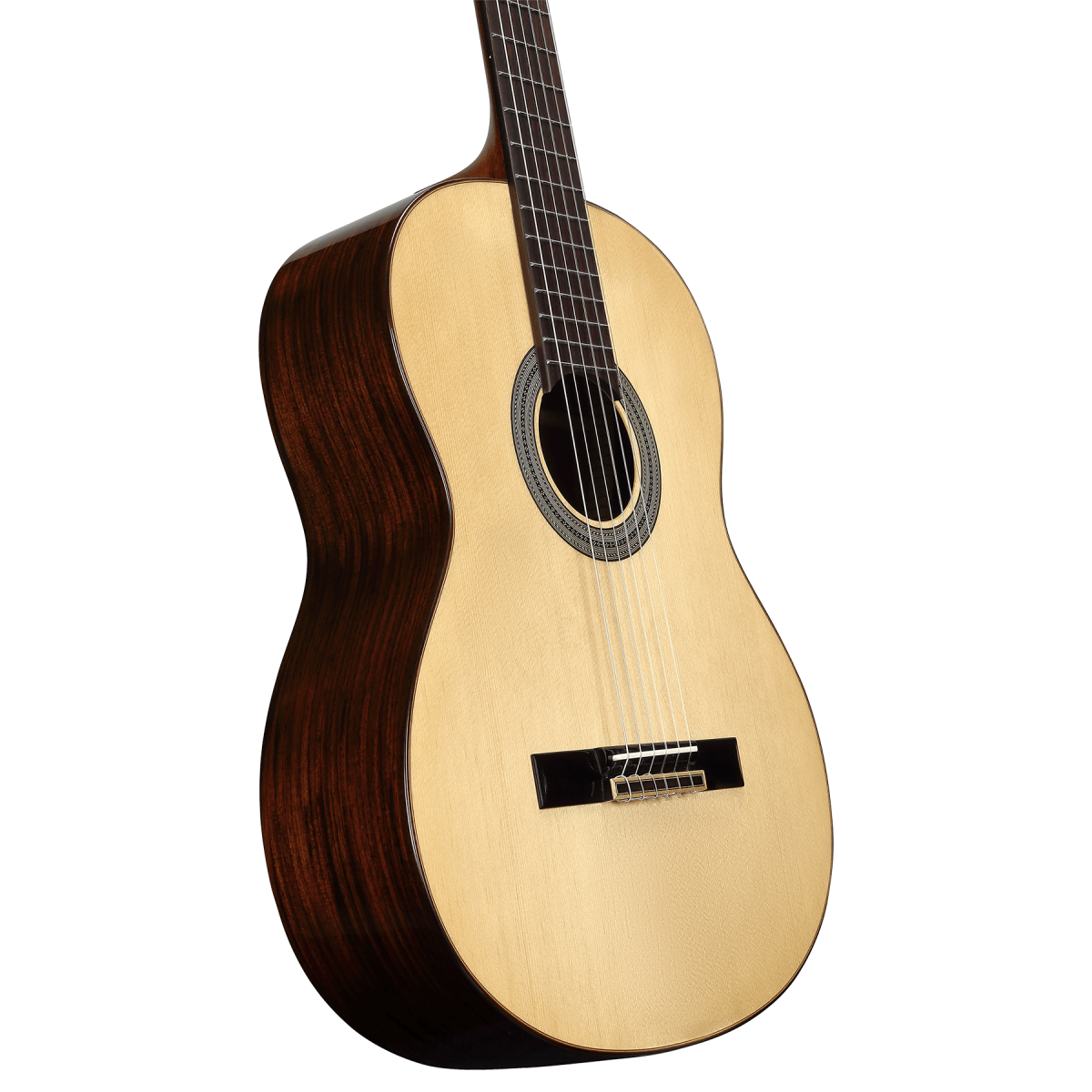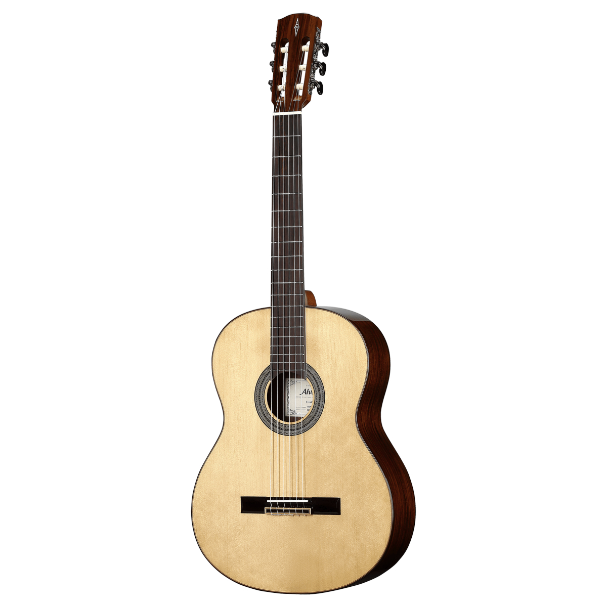 Gitara klasyczna z serii Artist. Płyta wierzchnia: Solid A+ Sitka Spruce. Tył i boki: Palisander. Rozmiar: 4/4 Gryf: Mahoń afrykański. Mostek: Palisander. Podstrunnica: Palisander. Podstawek i siodełko: Kość. Klucze: Chromowane z czarnymi motylkami. Ilość progów: 19. Struny: D'addario EXP46N. Skala: 650mm