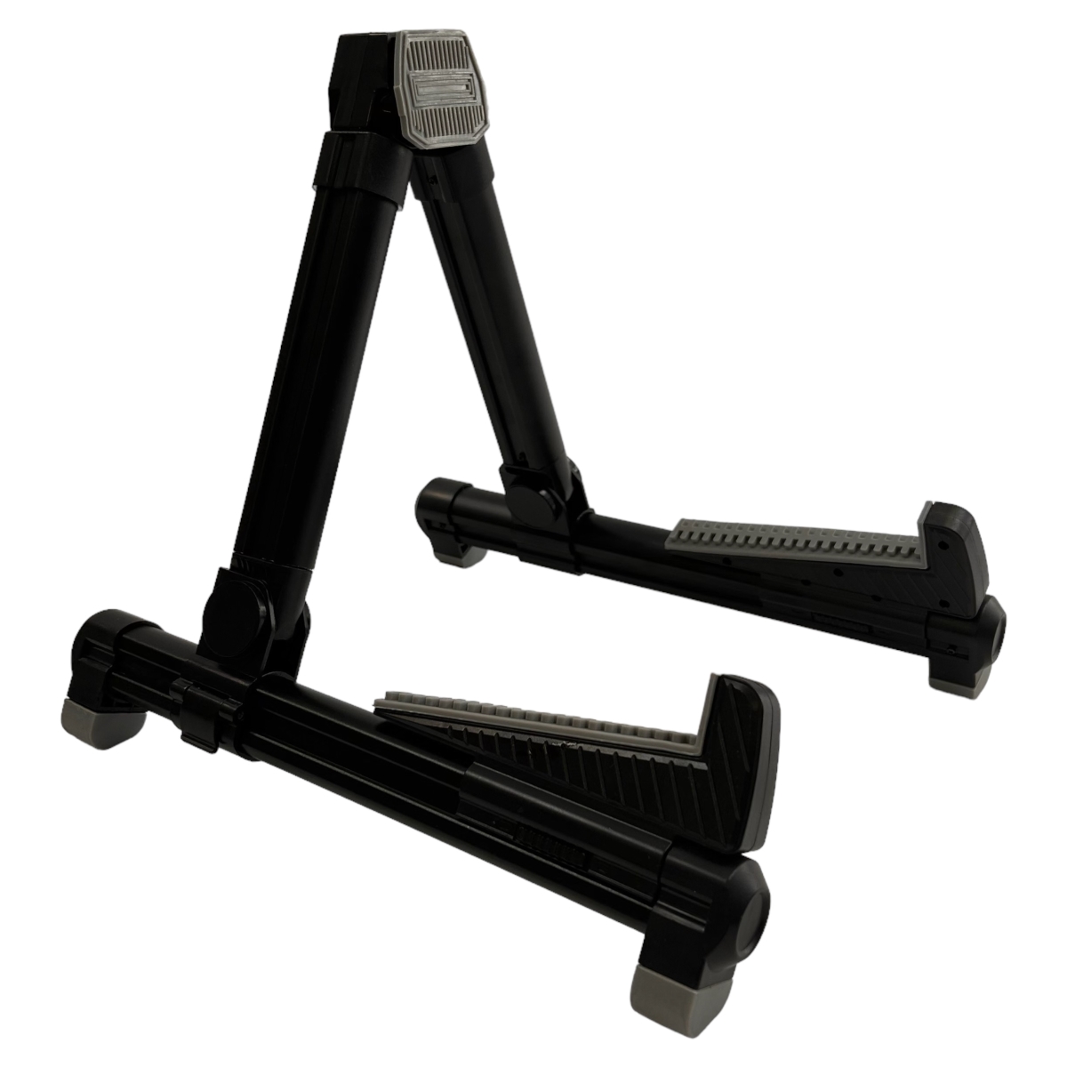 Stabilny i kompaktowy statyw podłogowy regulowany. Wykonany z najwyższej jakości materiałów. Ergonomiczny design gwarantuje trwałość i niezawodność, niezależnie od typu gitary. Uniwersalny. Dzięki płynnej regulacji zapewnia profesjonalne wsparcie do gitar klasycznych, elektrycznych, akustycznych oraz basowych. Nowoczesny wygląd i czarny kolor pozwala wyeksponować gitarę nadając elegancki charakter w każdym wnętrzu. Projekt bez oparcia na główkę sprawia, że instrumenty będą bezpieczne i zawsze w zasięgu ręki. Gumowe wykończenie zapewnia dodatkową stabilność. Idealny dla zespołów muzycznych, studiów nagraniowych, wykonawców scenicznych, szkół i nie tylko.