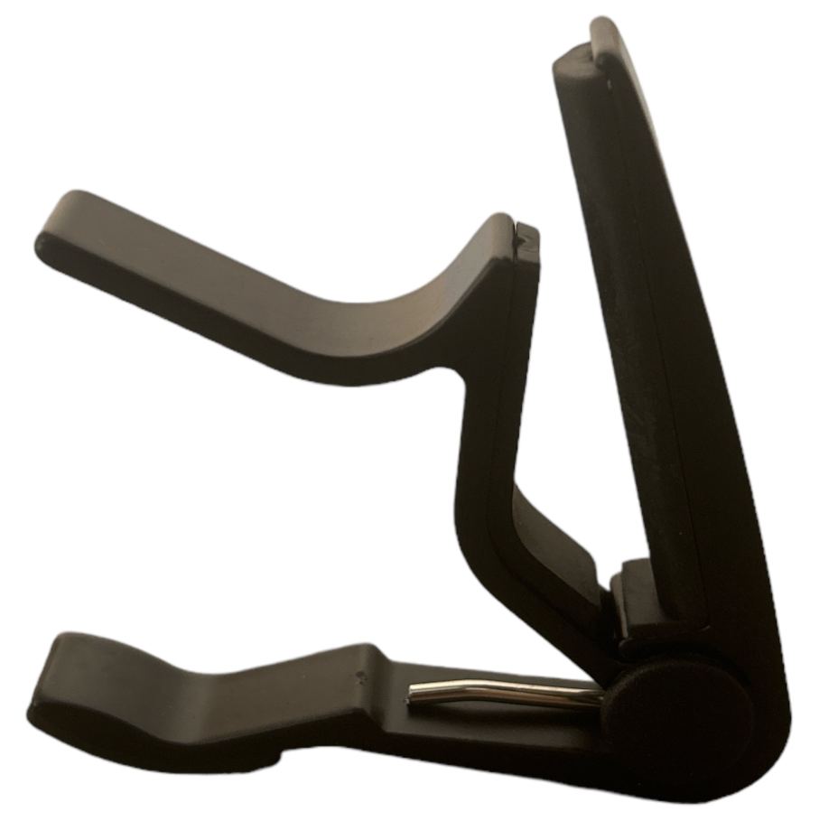 Kapodaster do gitary klasycznej w kolorze czarnym. Wykonany z lekkiego aluminium z myślą o szybkiej zmianie tonacji gitary, elegancji oraz łatwej obsłudze. Silikonowa podkładka zapewnia ochronę gitary i strun, jednocześnie przenosząc wibracje i gwarantując doskonałe brzmienie. Wyposażony w pamięciową sprężynę, która równomiernie rozkłada nacisk na każdą strunę, powodując, że gitara będzie dobrze stroić. Jedną ręką można szybko i łatwo zmienić pozycję kapodastra na progach. Kapodaster utrzymuje strój, zachowując doskonałą intonację we wszystkich pozycjach.