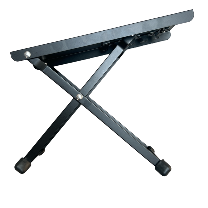 Wysokiej jakości podnóżek gitarowy. W kolorze czarnym. Wykonany z trwałych i solidnych materiałów, które gwarantują długotrwałe użytkowanie. Gumowe nóżki zapewniają stabilność. Niewielkie rozmiary sprawiają, że w trakcie transportu jest bardzo praktyczny. Po złożeniu można przechowywać go w futerale/ pokrowcu do gitary. Regulowany, dzięki temu może dopasować wysokość do indywidualnych preferencji. Używany przez zespoły muzyczne, studia nagraniowe, wykonawców scenicznych, szkoły i nie tylko.