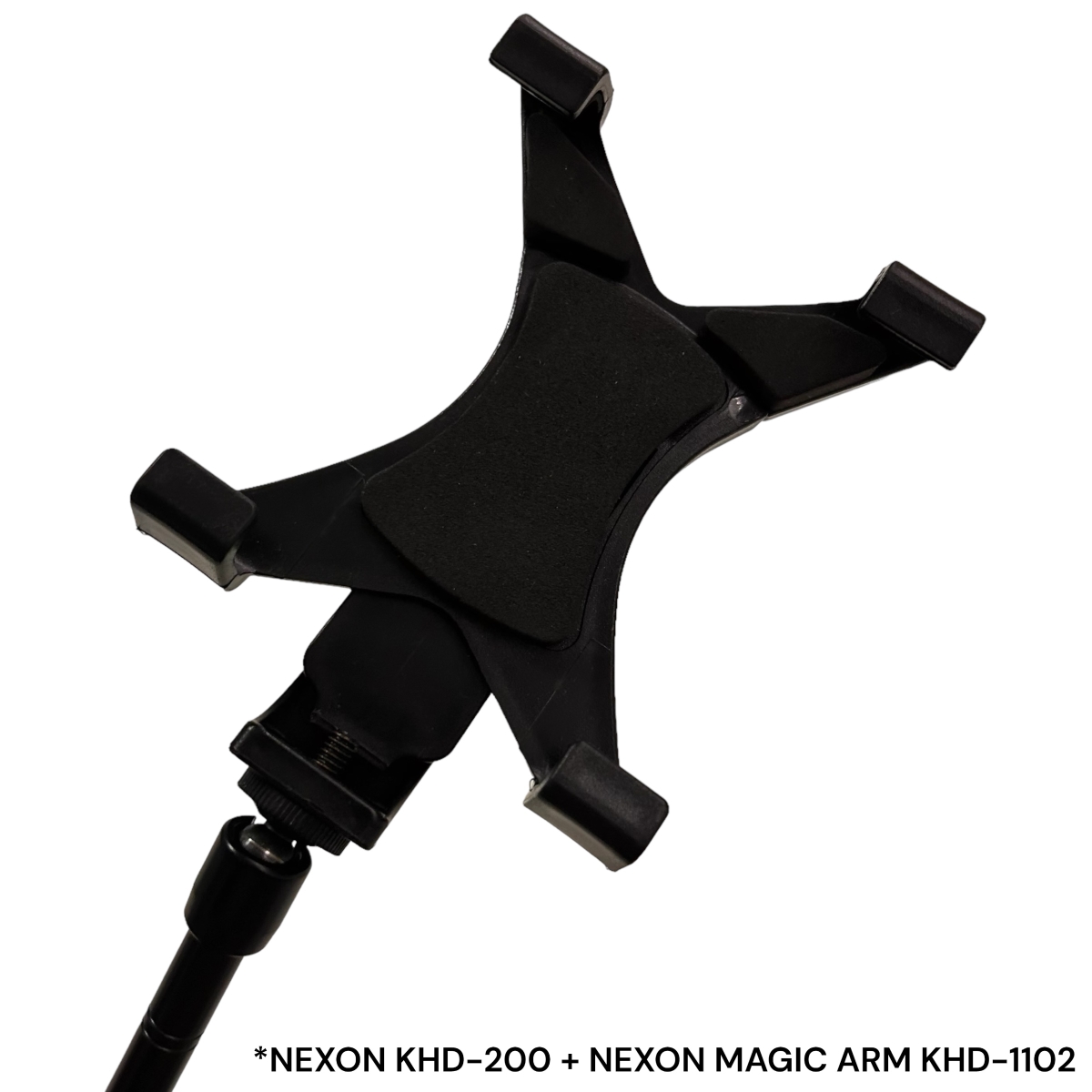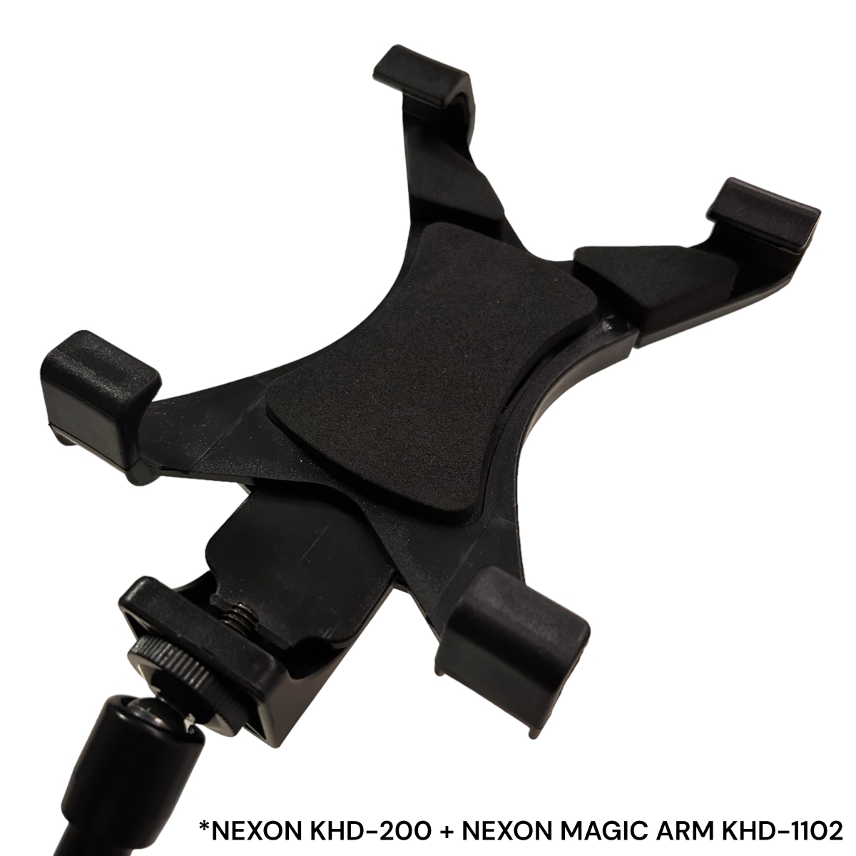 Uniwersalny uchwyt do tabletu. Regulowana wysokość, co pozwoli na dostosowanie chwytu do konkretnego urządzenia. Posiada pianki zabezpieczające urządzenie przed porysowaniem, dodając stabilność chwytu. Montowany do Nexon KHD-1102 Magic Arm.