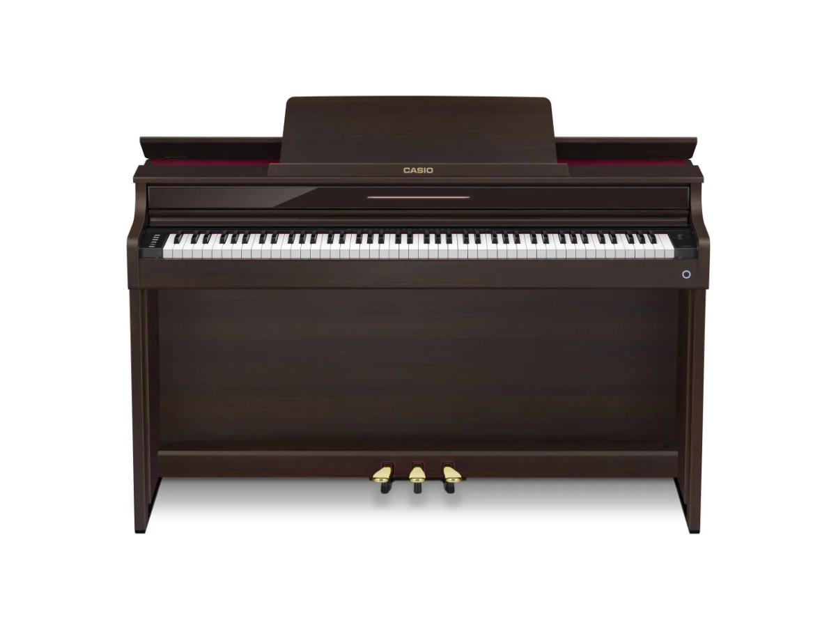 CASIO AP-550 to innowacyjne pianino cyfrowe, które harmonijnie łączy klasykę fortepianu akustycznego z nowoczesną technologią. Jego niekwestionowanym atutem jest dokładna symulacja renomowanego fortepianu z Hamburga, oferująca niezwykle bogate, szczegółowe i wszechstronne brzmienie. Model ten zawiera także 26 różnorodnych brzmień, zaawansowane efekty dźwiękowe i wizualne, podkreślone przez potężny system czterech głośników. CASIO AP-550 to doskonały wybór dla miłośników pianina, którzy poszukują doskonałej jakości dźwięku, nowoczesnego designu i wyjątkowej wygody podczas gry.