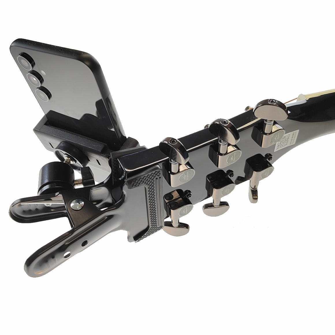 Uchwyt ten, to mały gadżet, który zmienia gitarę w mobilne centrum muzycznych pomysłów. Dzięki niemu Twój smartfon może towarzyszyć Ci podczas grania — bez kabli, statywów i kombinacji. Smartfon na wyciągnięcie ręki — klips z mocnym zaciskiem stabilnie trzyma telefon przy gitarze; idealny do przeglądania tabulatur, nut, tekstów, metronomu albo backing tracków w trakcie gry. Wygoda i komfort — uchwyt zamocujesz prosto na gryfie lub pudle gitary, a obracana głowica 360° pozwala ustawić ekran pod najlepszym kątem — bez odrywania wzroku od palców i strun.