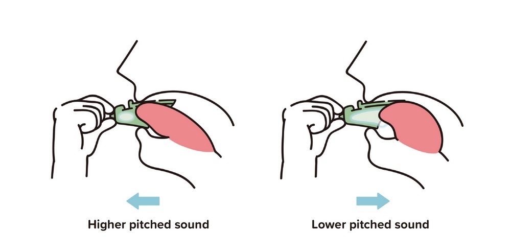 Jeśli między językiem a ustnikiem lub między językiem a policzkiem jest przerwa, dźwięk nie będzie wydobywał się. Dostosuj jamę ustną, naciskając policzki lub poruszając językiem, aby znaleźć punkt, w którym dźwięk jest wydobywany. Zobacz video: youtube.com/watch?v=pGzvSiMWBBQ&t=40s