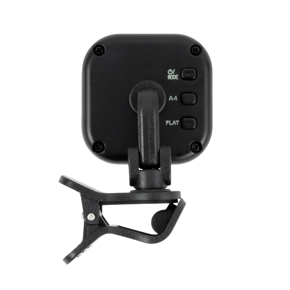 Dzięki sprężynowemu zaciskowi clip-on, tuner mocuje się stabilnie do większości główek gitarowych i basowych, nie blokując widoku na struny ani mechaniki. To idealne narzędzie zarówno do ćwiczeń w domu, jak i strojenia przed koncertem czy sesją nagraniową.