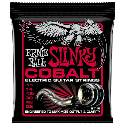 Zestaw sześciu strun do gitary elektrycznej z serii COBALT SLINKY ELECTRIC. Grubości: .011 .014 .018P .030 .040 .052.