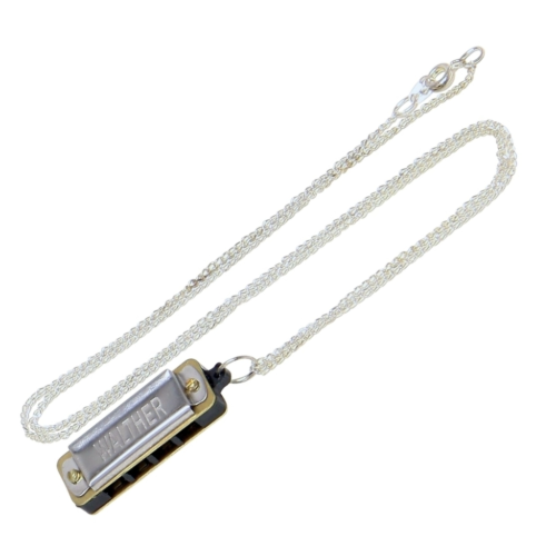 WALTHARI - 798500 - harmonijka ustna. Miniaturowa harmonijka ustna wraz z łańcuszkiem w zestawie. Posiada 4 otwory. Spakowana w kartonik.